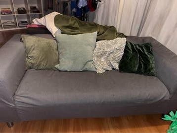 Grijze 2-zits van 1.80 Hoes is van stof en kan je eraf halen en wassen. Gratis op te halen in tilburg.