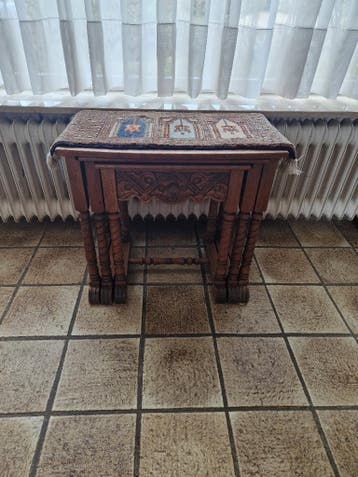 Bijzettafels; 56, 46 en 38 breed. Hoogte 50 cm