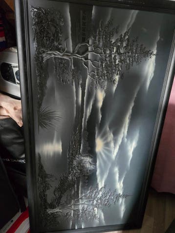 Apart schilderij ,bomen en kasteel komen eruit wat heel gaaf is.