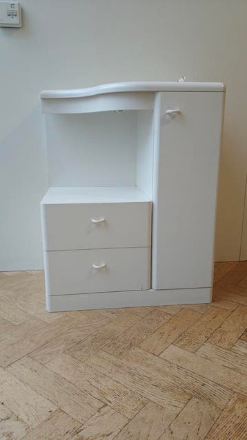 Gratis af te halen degelijk, gebruikt wit nachtkastje met twee lades en een kastje met een plank. Ideaal voor naast het bed om spullen in op te bergen. Het kastje heeft ook een ingebouwd lampje voor e