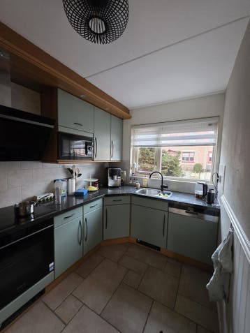 Nette l vormige keuken met siemens apparatuur. Inductiekookplaat (2022), afzuigkap (2022) en vaatwasser (2024). Het blad is gemaakt van graniet. Zie de maten op de afbeelding. Zelf demonteren en meene