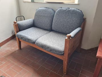 Houten bankje met kussens. Gratis op te halen.