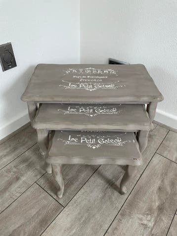 Set van drie brocante bijzettafels. Ophalen in hardenberg.