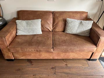 Gratis af te halen: een comfortabele bank bekleed met kunstleer. De bank heeft een afmeting van 185x85cm en biedt plaats aan twee tot drie personen. De bank heeft wat gebruikerssporen (zie foto), maar