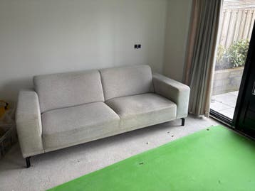 Een tweezitsbank van montel kleur grijs zwart metalen pootjes