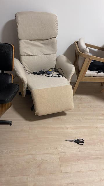 Nog werkende massagestoel, onderkant volledig gesloopt door de katten. Gratis af te halen in amsterdam. Er is een lift.