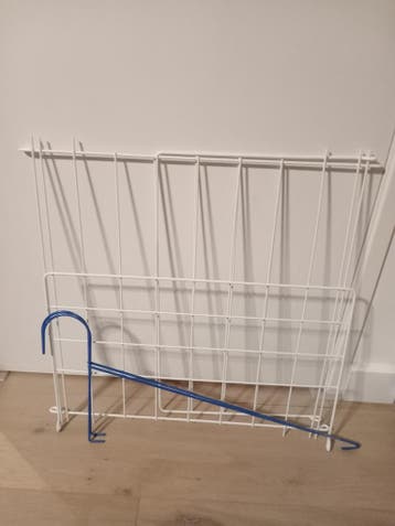 Handig droogrek dat eenvoudig aan de trap gehangen kan worden. Wit metalen rek met blauwe ophanghaken. In goede staat.
