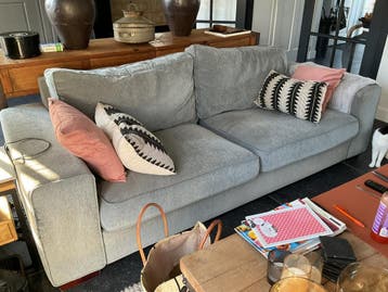 Met wasbare hoezen. Nog stevige zit. Moet zsm weg!