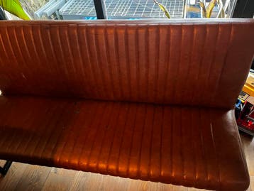 Gratis ophalen leren eettafel bank 1.60 M breed. Zitten wat slijtage plekken op, zie fotos. Misschien voor een handig iemand die een nieuwe hoes kan maken.