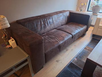 2,5 zits bank mustang bruin lederlook traagschuim vulling -breedte: 230cm -diepte 100 cm -hoogte 70 cm -zithoogte 40 cm vanaf 12 april gratis af te halen!