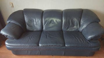 In goede staat echt leer bankstel afm. 2.20X100x78 en 1.65X100x78