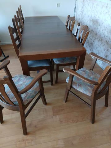 Gratis eettafel (220 cm) met 7 eetstoelen - Af te halen