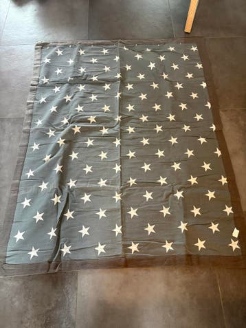 Dit is een grijs bank kleed met witte sterren. Het kleed komt uit een rookvrij huis. Het is een gratis item.
