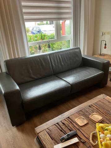 Deze goede lederen bank heeft een stevige zit ( is dus niet doorgezakt) en heeft de afmetingen 209cm lang 90cm diep 84 cm hoog bank is nergens stuk en heeft alleen gebruikssporen bank kan opgehaald wo