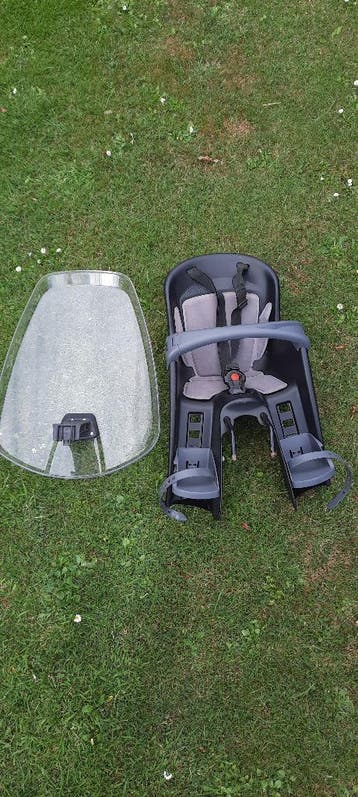 Gratis: fietsstoeltje + windscherm. Aan het stuur. Merk: polisport bilby. Let op: geen adapter. Alleen ophalen.