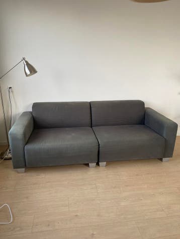Gebruikte bank, twee elementen lengte 225 cm, breedte 80 cm, hoogte 75 cm zitdiepte: 65 cm 8 poten zelf ophalen, lift aanwezig rotterdam centrum