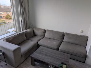 Grote hoekbank van 230x330 cm en 100 cm diep. De bank is te verdelen in 3 stukken. De kussens zijn wasbaar. Moet weg ivm verhuizing. Gratis op te halen in nijmegen op 2e verdieping, geen lift. Een van