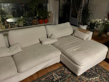 Gratis lintelo bank die nog makkelijk een tweede ronde mee kan. Je krijgt er twee sets hoezen bij een beige en een iets lichtere zoals op de foto’s. De kleine kussentjes zitten d’r niet bij. Alle hoez