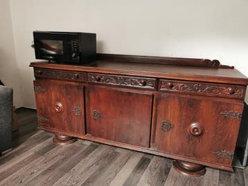 Gratis op te halen! Prachtige antieke buffetkast, perfect voor de liefhebber van klassieke meubels. Deze massief houten kast is voorzien van sierlijk snijwerk en biedt veel opbergruimte met zowel lade