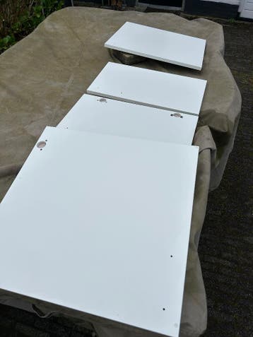 Helemaal nieuw. Heeft de gaten voor de scharnieren. Komt van mijn keuken renovatie project. Heb ik niet meer nodig. 2Cm dik h*b: 1. 58*59,5 2. 58* 32 Open rechts 3. 58*32 Open links 4. 58*49,5