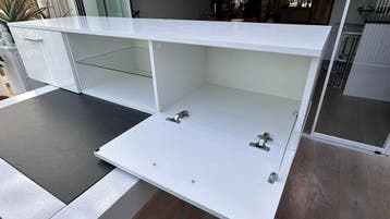 Witte TV-kast voor muurbevestiging - Gebruikt in prima sta