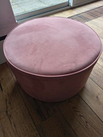 Gratis op te halen een roze poef. Het heeft een hele kleine beschadiging aan de bovenkant.