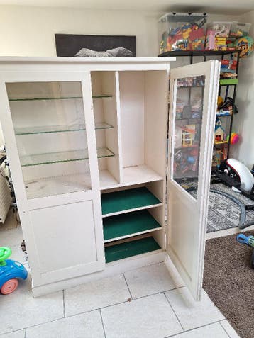 Gratis kastje. Glazendeurtjes. Kleur wit 105 cm breed 152 cm hoog 40 cm diep.