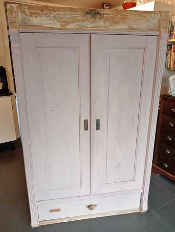 Gratis, oude grenen kast. Misschien een leuke opknapper. In de basis is deze kast nog helemaal prima. Is ooit 'opgeleukt' met vuren profiel latjes die ik verwijderd heb. Afmetingen (lxbxh): 11