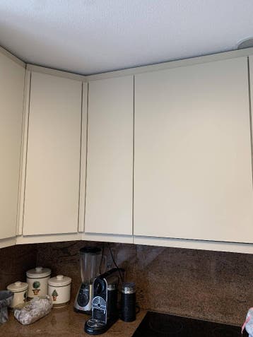 Foto 1 is bijgevoegd om de kleur weer te geven (deze kastjes behouden wij zelf). Foto twee en drie zijn de reeds gedemonteerde kastjes (staan in de hal). Hingen in onze bijkeuken en worden vervangen v