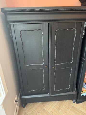 Mooie oude kast, zwart geschilderd. Moet wel worden bijgewerkt. Linker deur sluit niet goed, heeft even wat aandacht nodig. Breedte = 124 cm hoogte = 18 cm diepte = 45 cm 2 kleine lades binnenin, 1 gr
