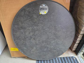 2 statafel bladen zonder onderstel. 1 Zit nog in de doos en 1 heeft een kleine beschadiging aan de onderzijde. Zie foto. Diameter = 85cm