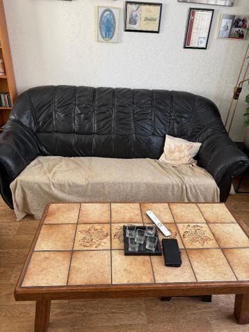 Licht bekrast maar niet kapot, kleden hadden wij erover ivm huisdieren