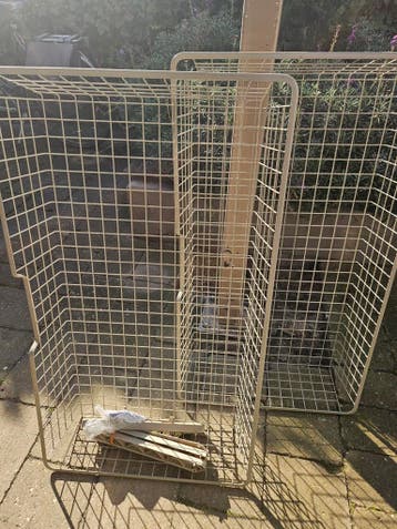 Twee manden voor een ikea pax kast. Ze zijn van metaal en hebben een lichte kleur. Er zitten ook rails bij om ze in de kast te monteren.
