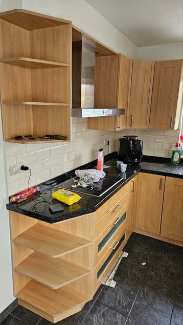 Gratis, zelf demonteren. Inclusief: - afzuigkap (aeg) - inductiekookplaat (whirlpool) - granieten blad - spoelbak - kraan - lossen kast voor koelkast en oven.