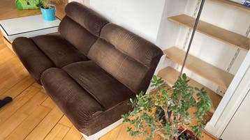 Leuke bank bestaat uit 2 losse delen. Bekleding is versleten. Komende 2 dagen gratis op te halen. (4,5, 6 April)