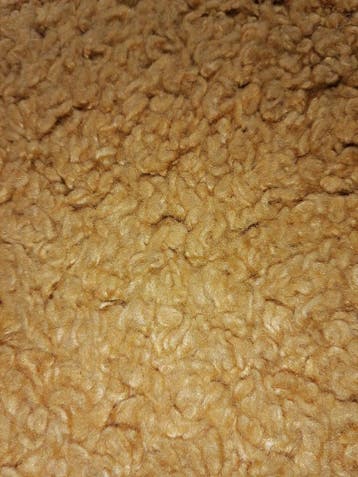 Dit is een okergeel vloerkleed van 230 bij 155 cm. Het kleed heeft een wat ruwere textuur en is rechthoekig van vorm. Het is een gebruikt item.