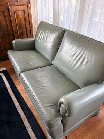 Gratis lederen 2 zitsbank, olijfgroen. In goede staat. 160X80 cm