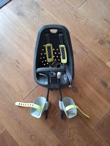 Kinderzitje voor voorop de fiets van het merk yepp. Het stoelje is nog goed, alleen laat het omhulsel van de vasthoud stang iets los, zie foto 2. Hier kan je tape omheen doen.