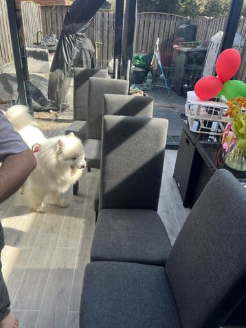 5 Grijze eetkamerstoelen GRATIS
