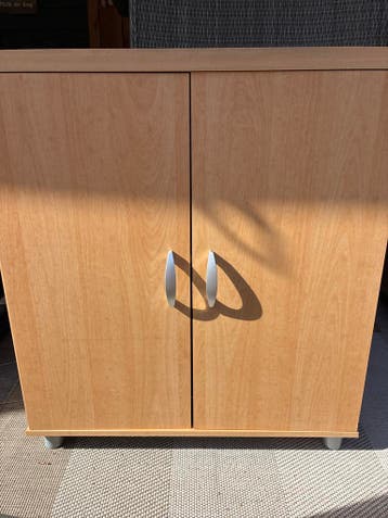 Handig kastje met twee deuren, ideaal voor het opbergen van diverse spullen. Het kastje is gebruikt en heeft enkele lichte krasjes op de bovenkant, zoals te zien op de foto's. Perfect voor extra o