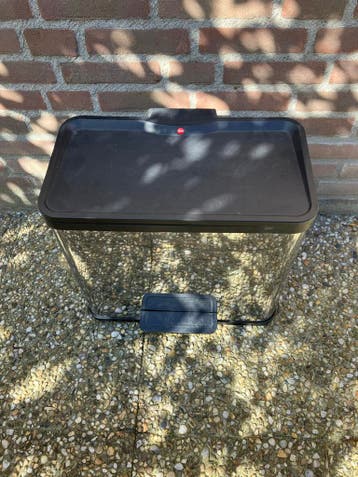 Hailo pedaalemmer met twee binnenbakken. Gebruikt maar in goede staat. Er zitten wat kleine deukjes aan de buitenkant en hij moet even schoongemaakt worden. Altijd met afvalzakken gebruikt. Gratis af
