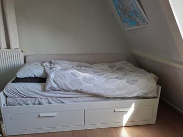 Twee comfortabele enkele matrassen in zeer goede staat. Altijd gebruikt met beschermhoezen, waardoor ze schoon en fris zijn gebleven. Ideaal voor een eenpersoonsbed of als extra slaapplek. Klaar voor