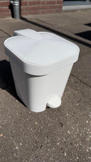 Compact wit pedaalemmertje, ideaal voor de badkamer, toilet of kantoor. Het emmertje is voorzien van een handig pedaalmechanisme voor hygiënisch gebruik. Door het kleine formaat past het gemakkelijk i