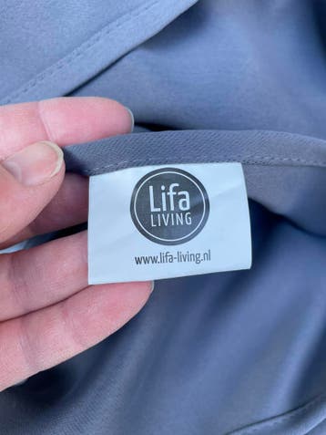 2x blauwe gordijnen. Wat verkleurd aan de binnenkant. Ophalen 1021ek. Per gordijn zijn de afmetingen ong 230 lang bij 240 breed. Met haakjes.