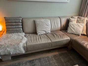 Afmeting is 2.50 X 2.50 Leer is door zonlicht niet meer egaal van kleur .