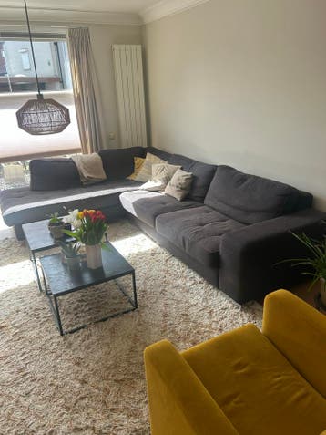 Comfortabele en ruime hoekbank, perfect voor een gezellige chillruimte. De bank is gratis af te halen. Ideaal voor wie op zoek is naar een functionele en grote bank voor weinig geld. Let op: de bank i