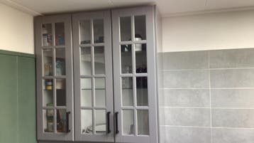 Gratis op te halen. Twee keukenkastjes met glazen plankjes. 1. Breedte 91cm hoogte 100 cm diepte 37 cm 2 breedte 82 cm hoogte 100cm diepte 37 cm ook per stuk af te halen. We krijgen een nieuwe keuken.