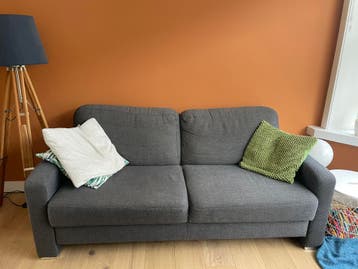 Grijze bank, mag gratis weg ivm aanschaf nieuwe bank. Ophalen op 7 april. Veel gebruikt maar zit nog lekker. Wel wat gebruikerssporen zoals paar lichte vlekken op de bekleding (zie laatste foto). Geen