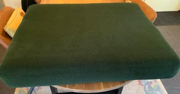 Gratis af te halen twee grote donkergroene velours kussens. Afmetingen 90x70x15 kussens zijn in prima staat. Hoezen zijn afritsbaar en reeds gewassen