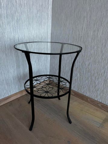Twee bijzettafeltjes met glazen blad